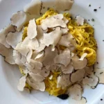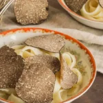 Domaći ili kupovni njoki od krompira u krem sosu sa pečurkama i svežim crnim tartufom. Za 2 osobe.